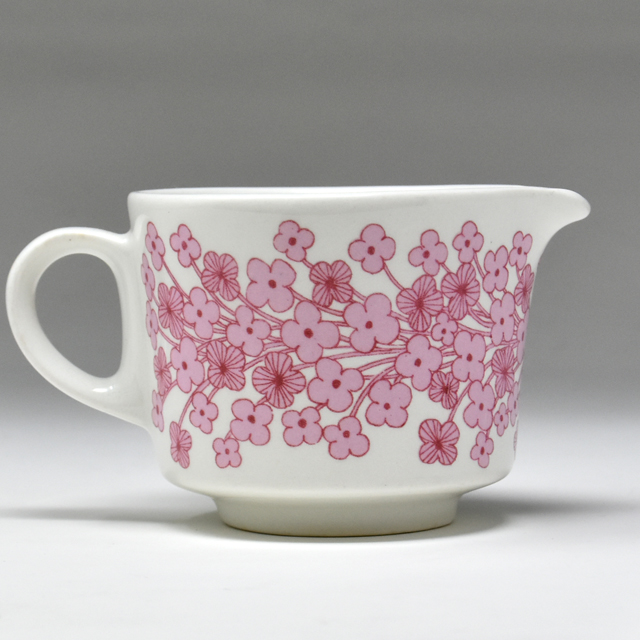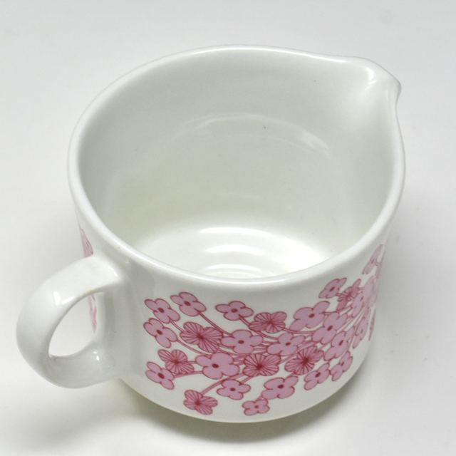 可愛らしいピンク一色で小花が描かれた、アラビアLeena(レーナ)シリーズのクリーマーです。クリーマーとしてだけでなく、ソースやたれにもお使いいただけます。容量はいっぱいまで入れると約130ccです。