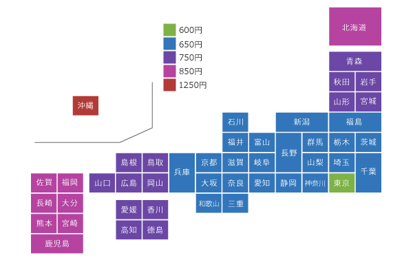 関西滋賀、京都、大阪、兵庫、奈良、和歌山700円